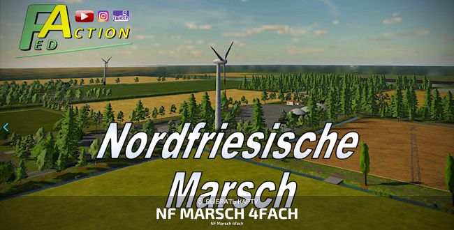 A map with a typical North German landscape in North Friesland is now available in Farming Simulator 22. We have dams here, ditches around the fields, and the fields are mostly square. The land has been reclaimed from the North Sea by dams over the past few centuries.