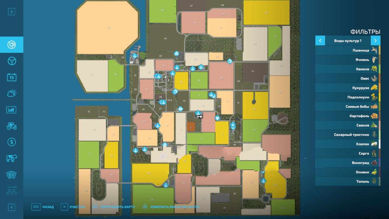 In addition to the standard fruits, rye, spelt, triticale and millet have been added to the map, and other types of filling on the map are earth, sand and gravel.