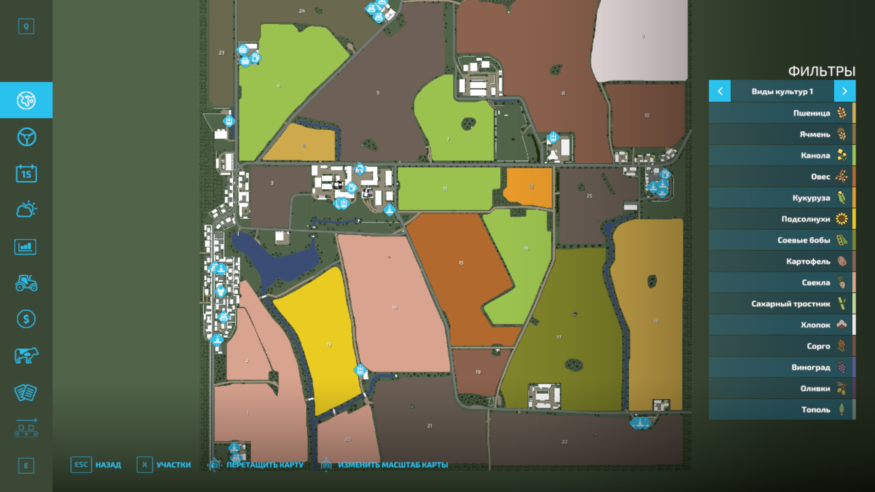- 22 fields and 3 meadows,