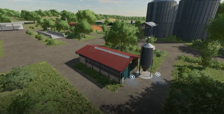 A new large farm, which now has all kinds of animals, as well as several buildings, a hopper for storing silage and straw / hay.