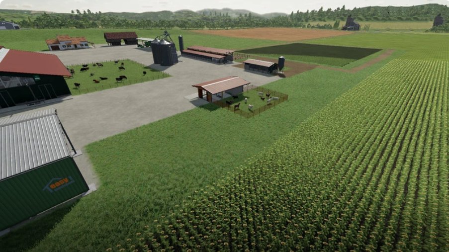 A new large farm has been created, the farm now has all kinds of animals, a silo pit and a straw / hay storage facility.