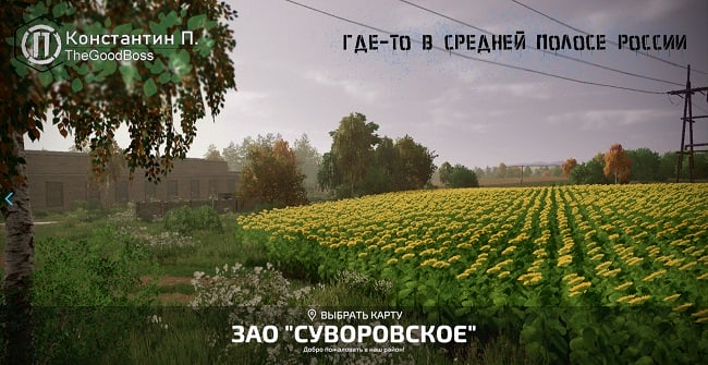The Russian art "ZAO Suvorovskoye" for FS22 was created based on a fictional area, adhering to the terrain and landscapes of central Russia.