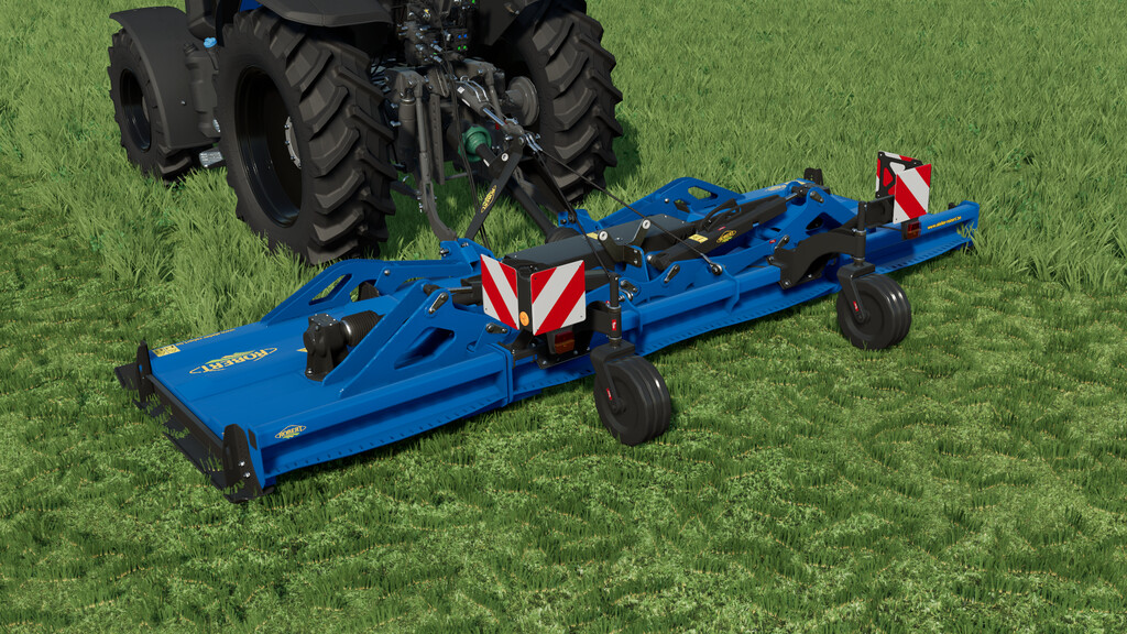 Each rotor has two oscillating blades that retract when they hit an obstacle to avoid serious damage. The special shape of the blades creates a suction vortex that allows the grass knocked down by the tractor wheels to rise up and be cut.