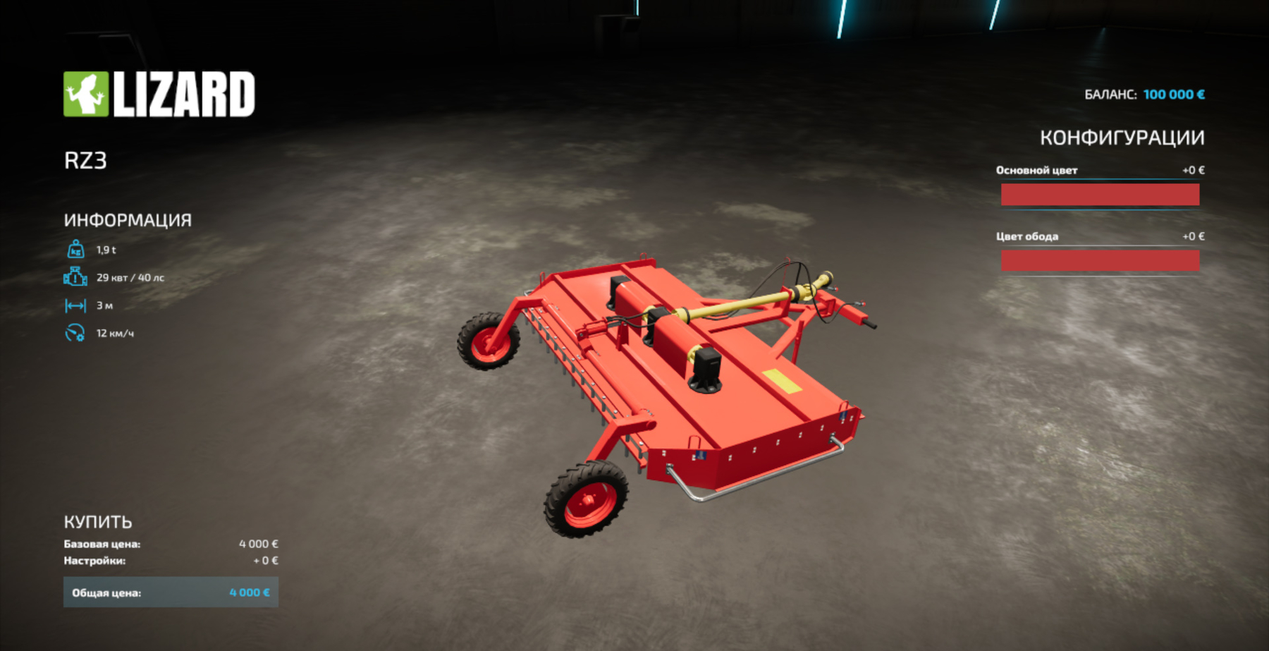 Mower cover RZ 3m. – Price: 4000 y.e.; – Working speed: 12 km/h; – Required power: 40 HP; – Capture width: 3 m; – Configurations: color.