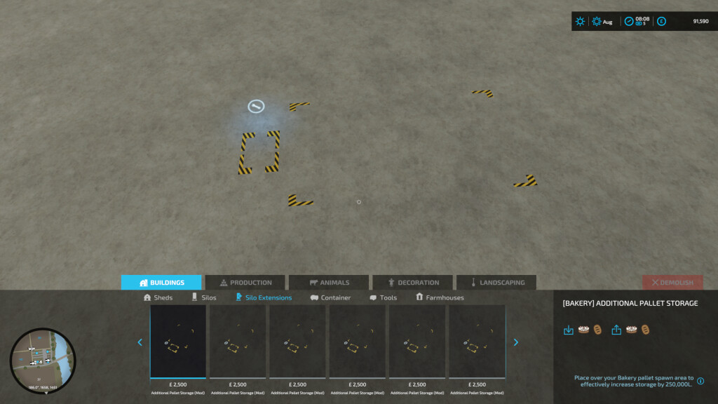 NOTE. Although you can place additional pallet storage when the pallets are already there, they will not be accepted until they are moved slightly to start the process. Credits: GH66Mods |