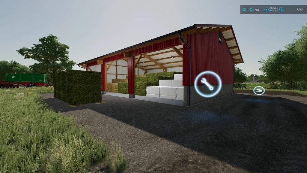 Bales or loose crops can enter inside, and bales of all sizes, loose crops, both round and square, will appear in front of the barn. There are 3 versions to choose from. Barns change color and have built-in lighting. If the bale storage is empty, it can still be used as a shed or shed!