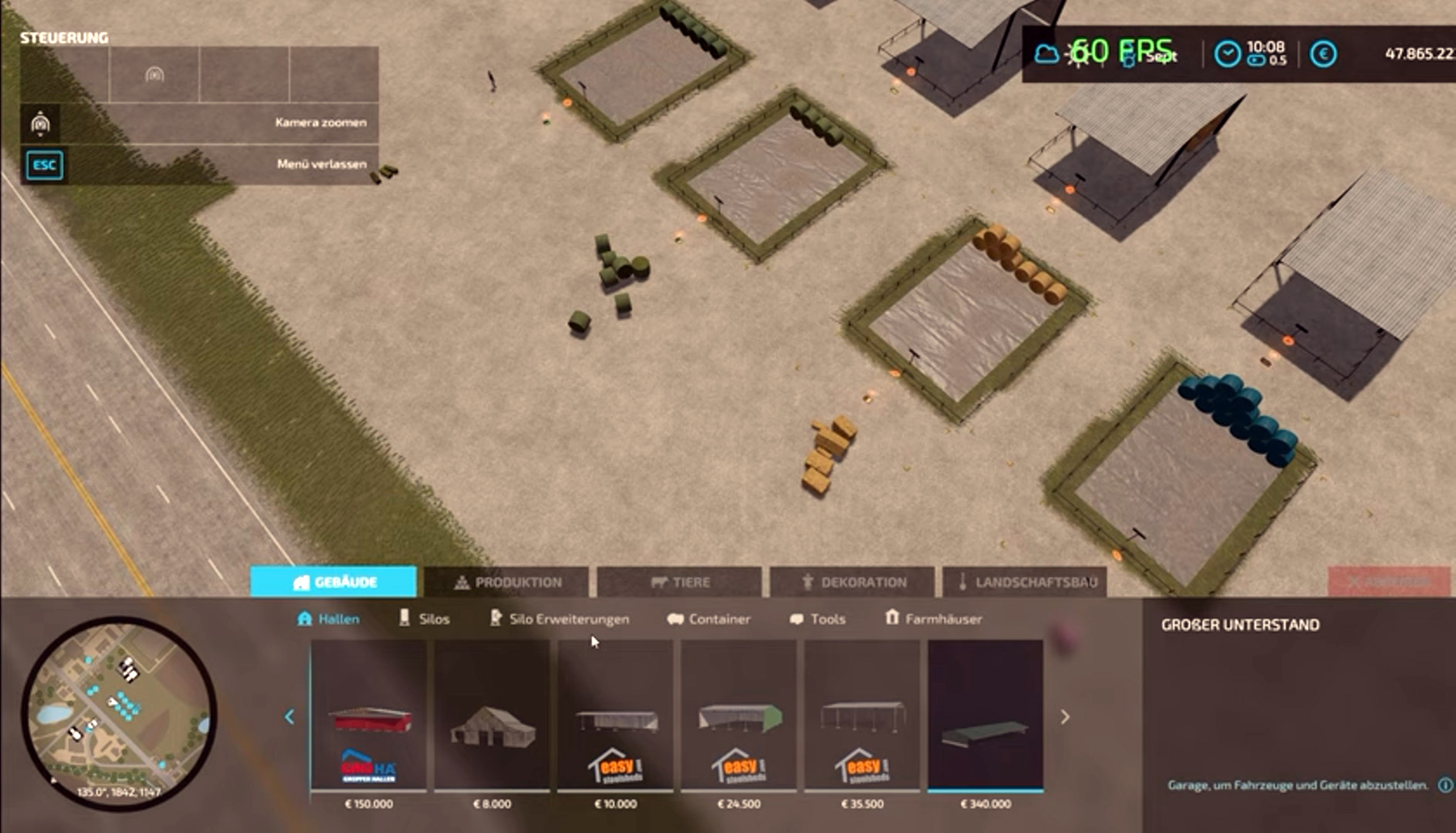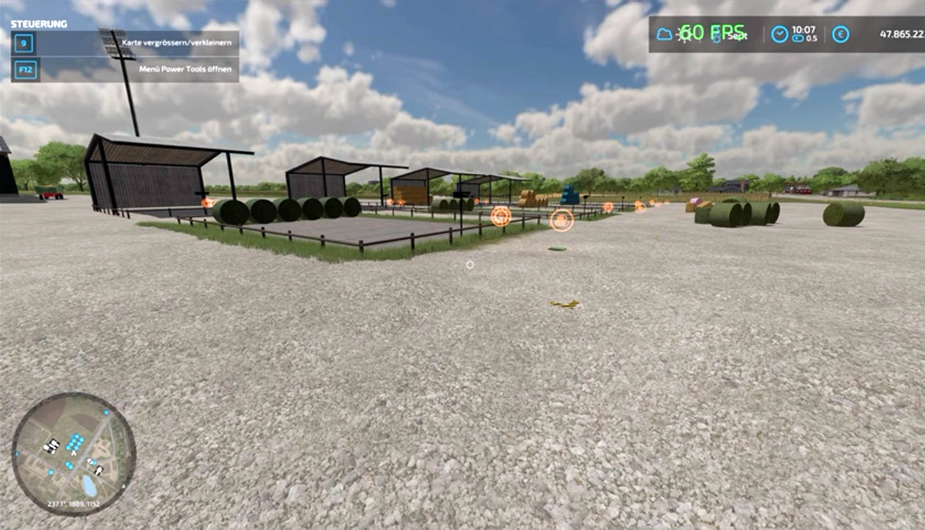 Warehouse for round and square bales Version 1.1.0.0 - Display now shows 7 digits - Script update for APalletSilo (version: 2.2.0.0), SiloObjectFillLevelSpecialization (version: 0.3.1.0) and SiloDisplaySpecialization (version: 0.1.1.0). - Removed fences Storage of round bales: hay, straw, grass and silage. Cost of each: 50.000 € daily expenses: 50 € Bale storage: hay, straw, grass and silage Costs in each case: 50,000 € daily expenses: 50 € Credits: Achimobil / San |