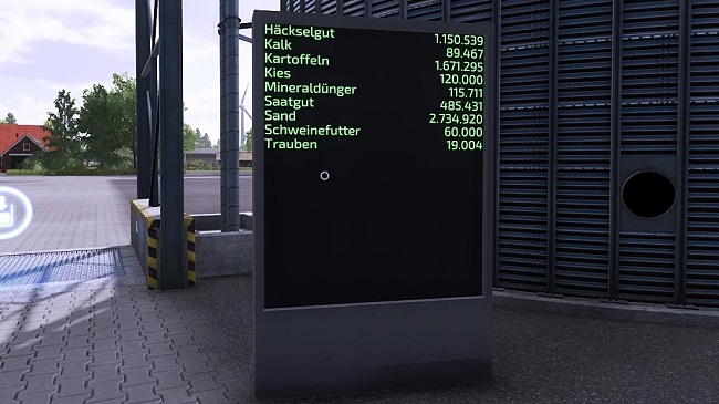 Digital display for production facilities or warehouses in Farming Simulator 22.