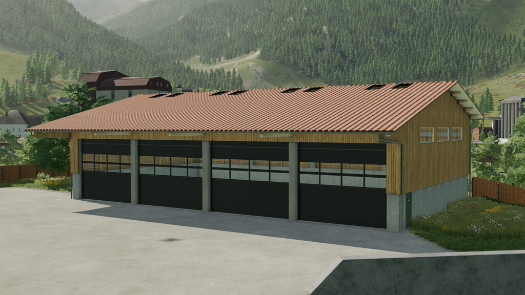Mod Composite Machinesheds v1.0.0.0 for Farming Simulator 2022 The engine room package includes four different sizes, from a 3-door 24 m wide version to a 6-door 48 m wide version. It can handle large machines up to 16 meters long. It is fully equipped with an electric sectional door and lighting system. Machine hall 3 doors: Machine hall 4 doors: Machine Hall 5 Door: Machine Hall 6 Door: Credits: VertexDezign, Niggels |