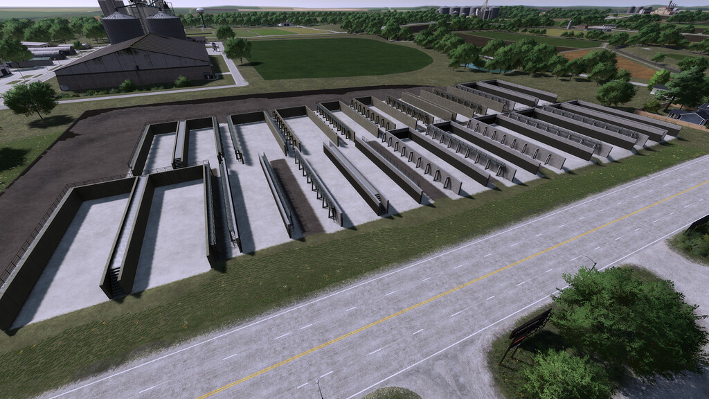 This large silo block consists of 16 silos of different designs. The set includes through passage and wedge silos of various sizes with straight walls.