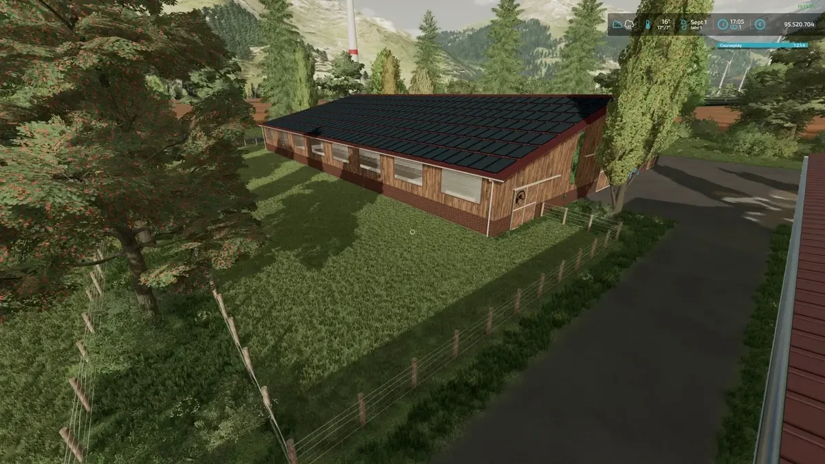 Mod Cowshed v1.0.0.0 for Farming Simulator 2022 Contains: A cowshed that holds 80 cows, with a solar panel on the roof that generates income. Price: 518.500$ Lining capacity: 100000 l Credits: Agrartechnik Nordeifel |