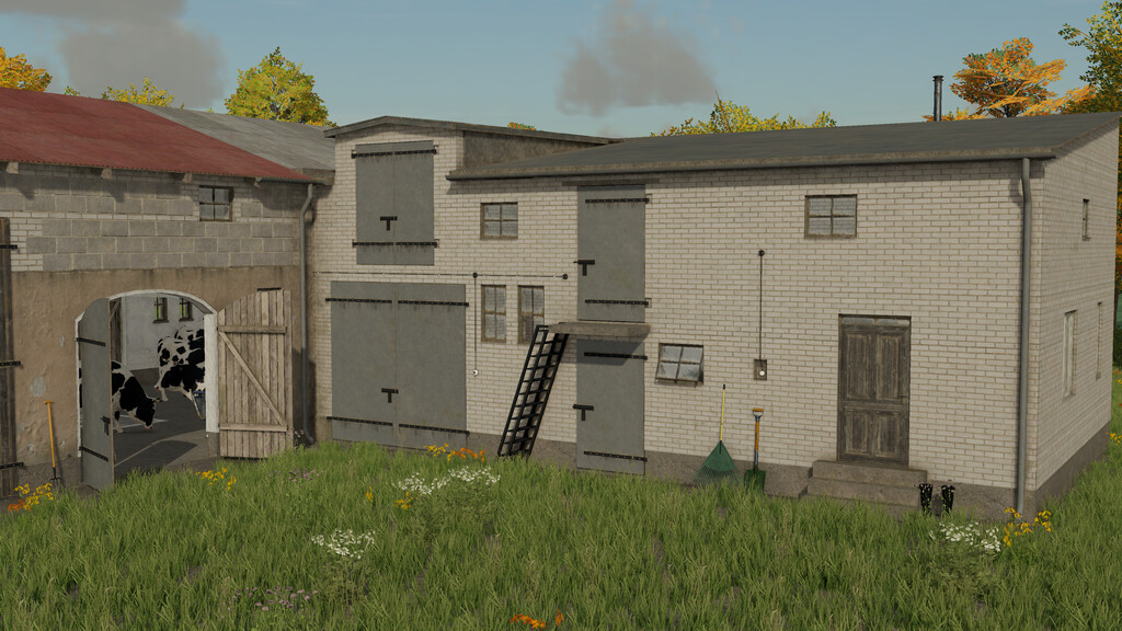 Mod Cowshed With Barn v1.0.0.1 for Farming Simulator 2022 Shed to store cars - Price: 90 000 € - Daily cost: 20€ - Capacity: 30 cows List of changes 1.0.0.1: - Fixed snow - Added stacking of straw from a bale