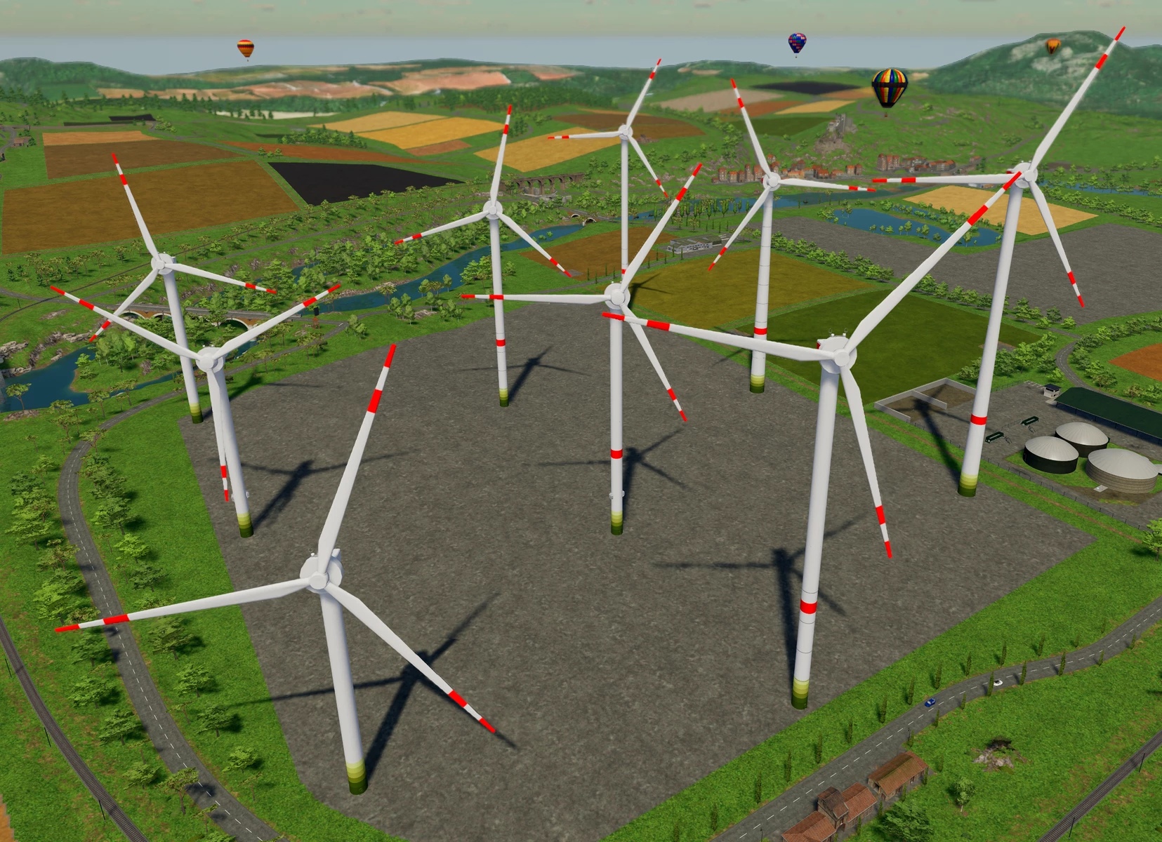 This mod consists of 3 EP3 platform windmills with different hub heights. Plant features are as follows: