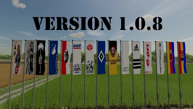 Mod Flag set v1.0.8 for Farming Simulator 2022 A small but beautiful set of flags. Flags are freely placed. Version 1.0.8 The first pack contains 15 different models. More will follow e.g. more country flags. Credits: Ronny Viking |