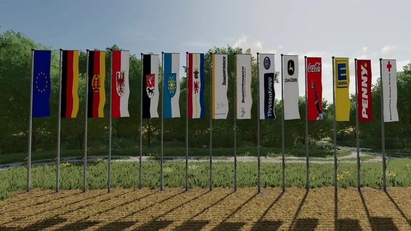 A small but beautiful set of flags. Flags are freely placed. Version 1.1.0 The first pack contains 15 different models. More will follow, for example, more country flags. Credits: Giants,Design by Ronny Viking |