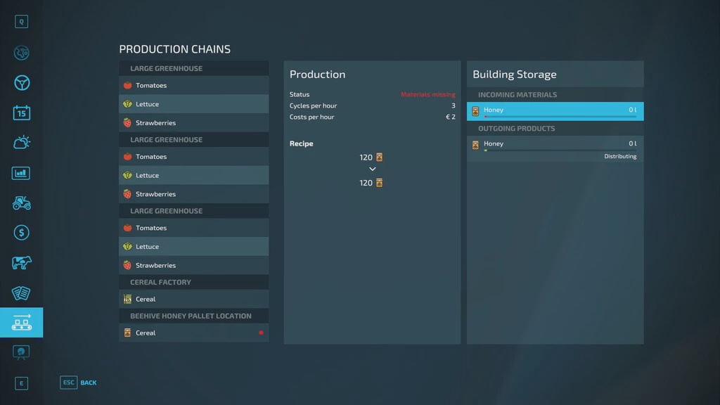 Honey produced in the hives will appear in the Honeycomb Storage. It can store 30,000 liters of honey at a time.