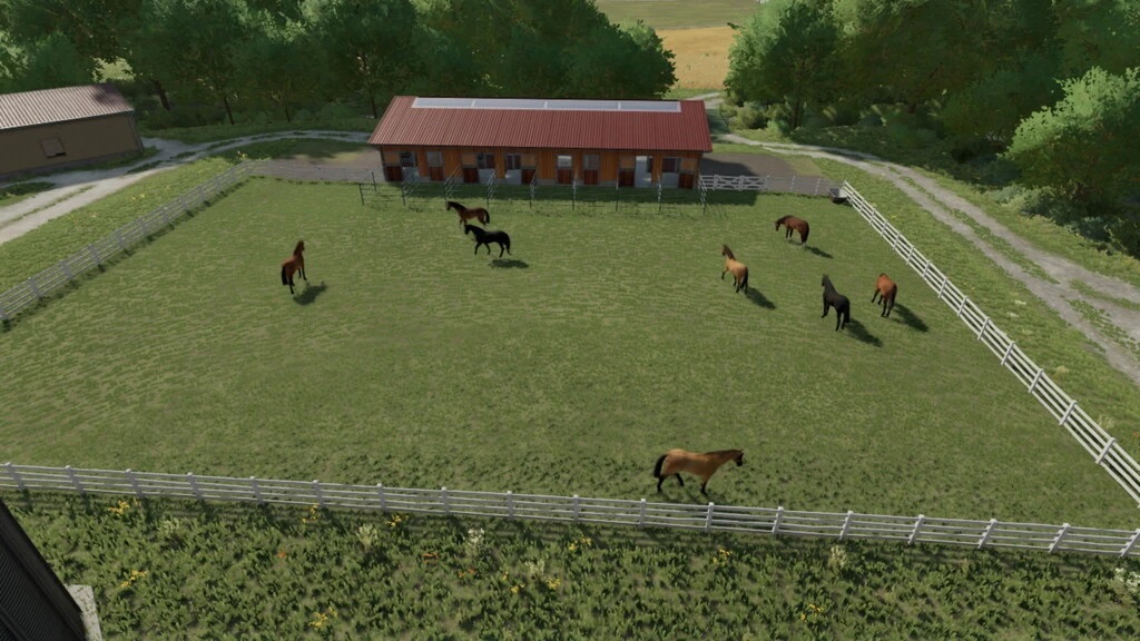 Medium stable with a large pasture, new fence, paddocks and trim Space for 8 horses Credits: SirSim |