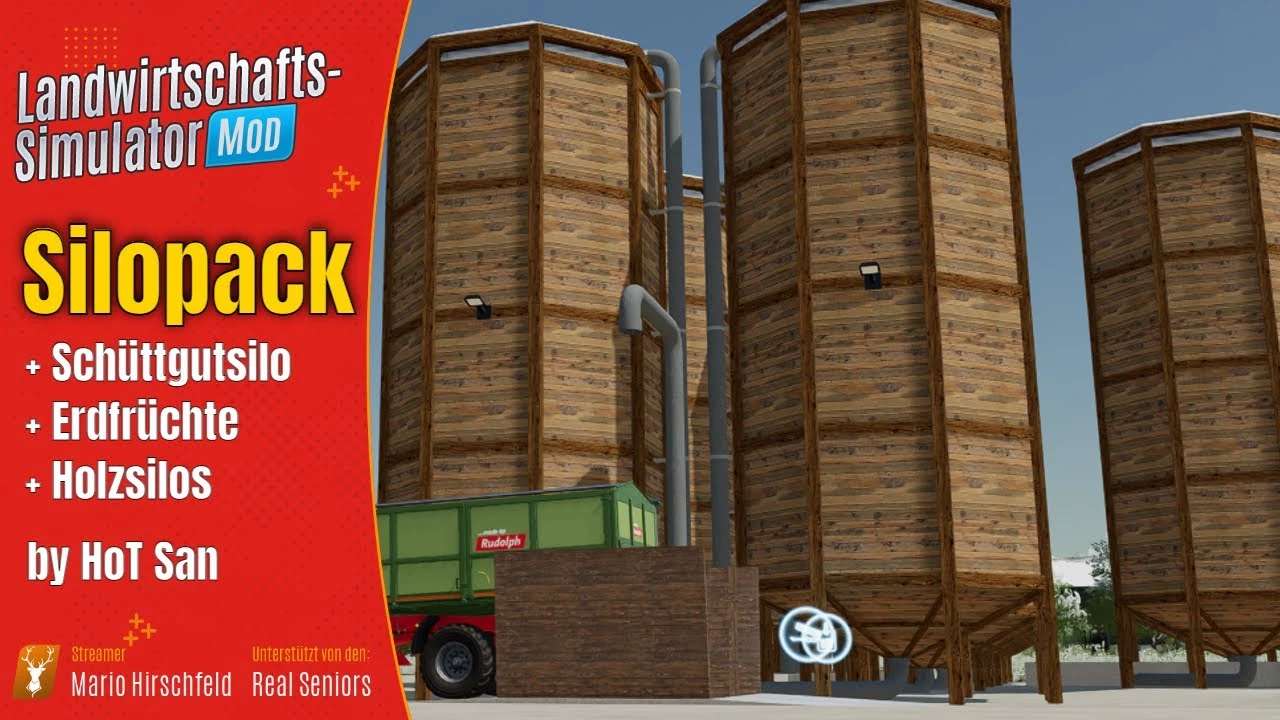 Mod HOT STORAGES V1.0.0.0 for Farming Simulator 2022 1 double Hofsilo Wood 300,000l (all fruits except earth fruits and grapes as well as olives) 1 additional silo 4 wooden towers 600,000l 1 additional silo 10 wooden towers 1,500.00l Hofsilo with 10 bays each 150,000l for wheat, barley, oats, grain maize, rapeseed, soybeans, sunflowers, millet. as well as pig feed and mineral feed Ground fruit warehouse for potatoes and sugar beets each 1,000,000l. Credits: HoT online Team |