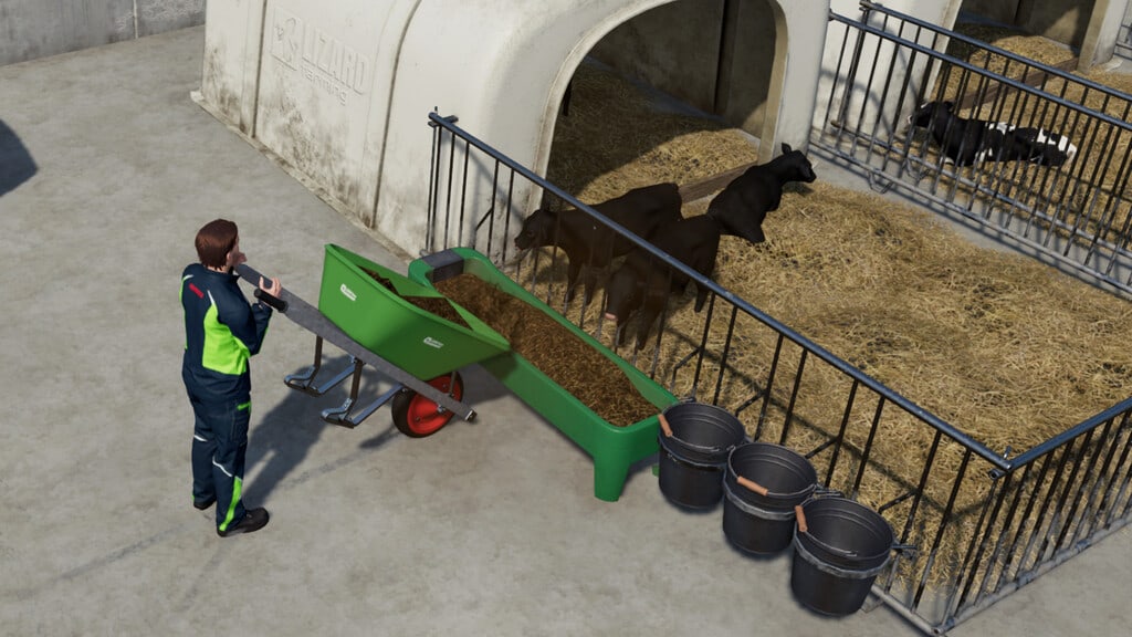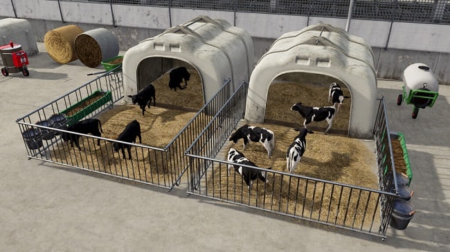With this mod, it is recommended to use the mod "More Animal Enclosures (64)" (from modelleicher / Farming Agency) so that you can build several huts for calves. |