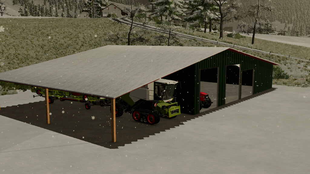 Mod Machineshed With Canopy Roof v1.0.0.0 for Farming Simulator 2022 The mod includes a machine shed with four large sectional gates and an attached canopy. Credits: Dithmarscher Modding |