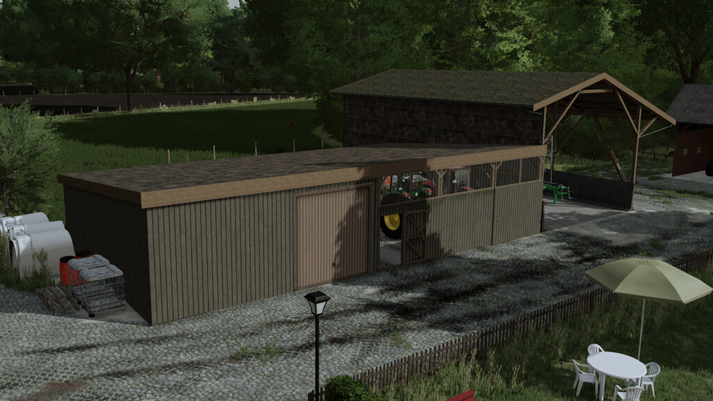 Mod Old Barn With Shelter v1.0.0.0 for Farming Simulator 2022 This old barn used to be used as a small stable and bunker. Now it stores your cars and keeps them dry. Credits: Vertex Dezign |
