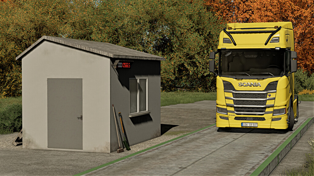 Mod Old Small Weighing Station v1.0.0.0 for Farming Simulator 2022 Ideal for large trailers or tipper semi-trailers. Credits: K03y |