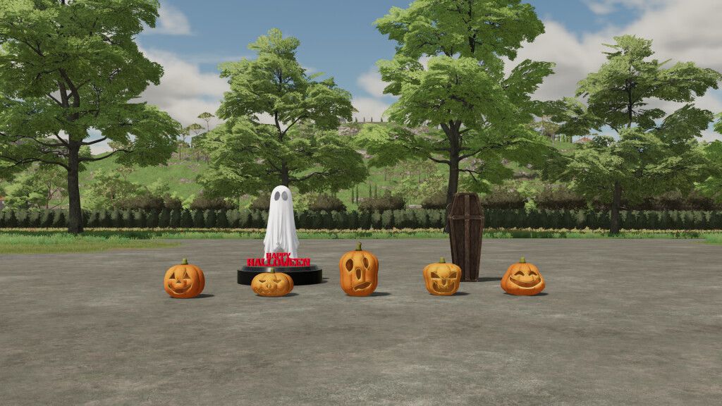 Halloween set with five pumpkins, a coffin and an illuminated ghost statue for Farming Simulator 22. Generates money by the hour. - Pumpkins: $500 Income per hour: $11 on easy difficulty, $8 on medium, $2 on high difficulty. In version 1.0.0.1: Credits: raulycristi1 [VSR Modding Sur] |