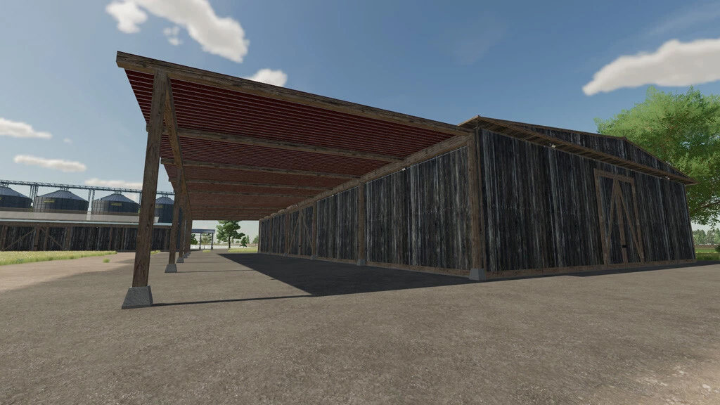 With this option you get the shed along with a large capacity farm silo which has 50000000 liters of bulk storage. If you need more storage space just add a Silo Extension. This combination will require a large spread of land so you may want to clear the land prior to construction. This option can be found in the Silos tab of the construction menu.