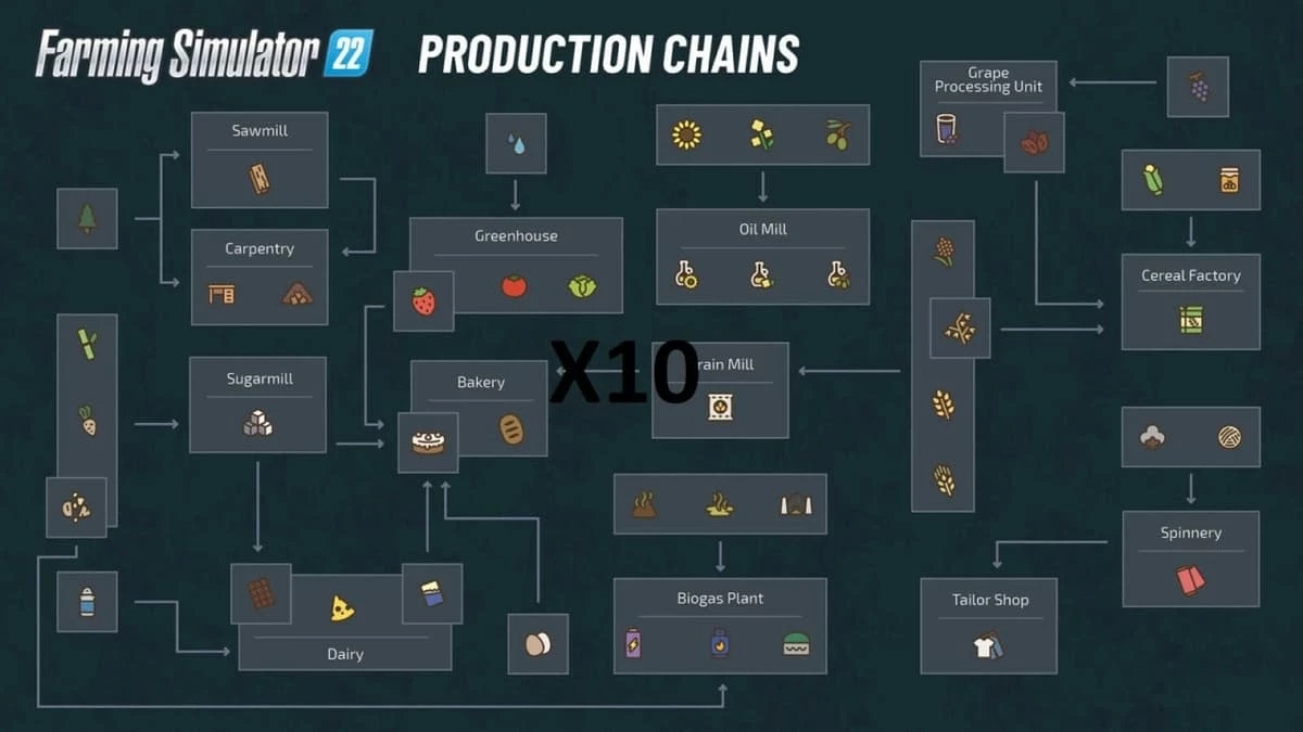 Mod Production Chains x10 Faster v1.0.0.0 for Farming Simulator 2022