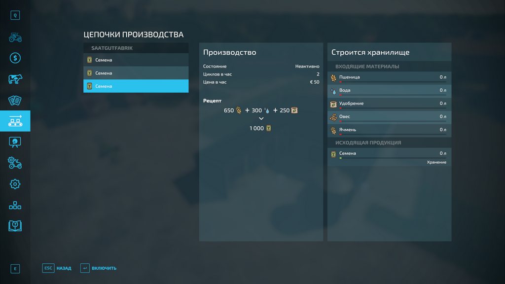 Mod Seeds Factory v1.1.0.0 for Farming Simulator 2022 Would you like to produce seeds yourself in Farming Simulator 22? Here's a building with 3 recipes. - Wheat / Oats / Barley + water + fertilizers; - Cost - 80 thousand USD