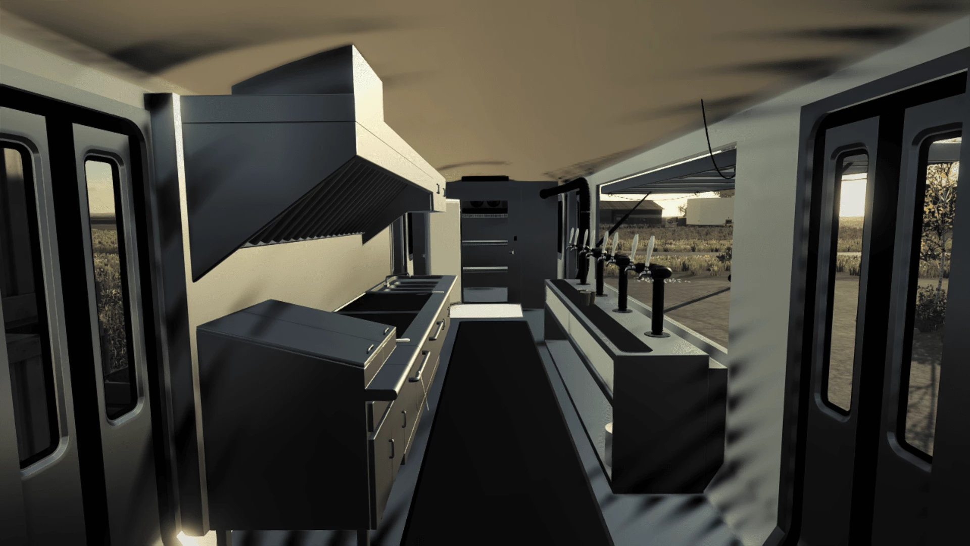 Decorative trailer + chef's bag as a point of sale. Put the bag in the food trailer and go to your factories to sell products.