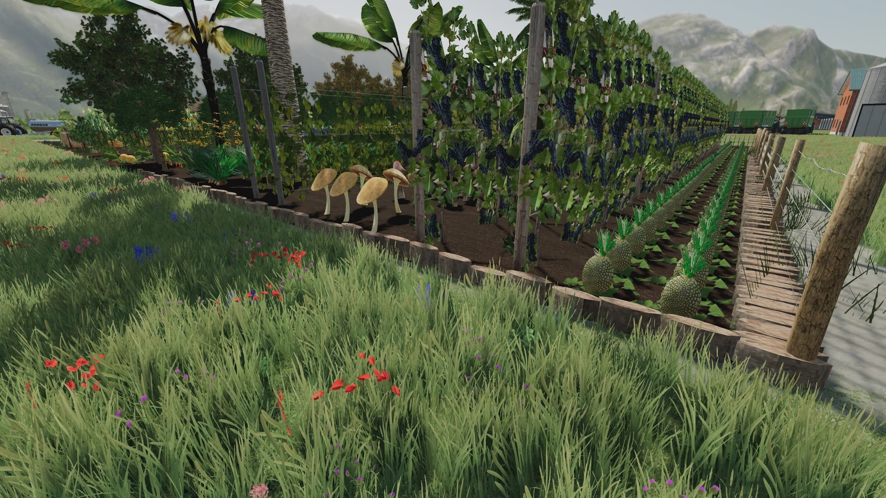 Mod The Garden v1.4.0.0 for Farming Simulator 2022 updated version Hops Grapes Mushroom Pineapple You need a water seed tray to work