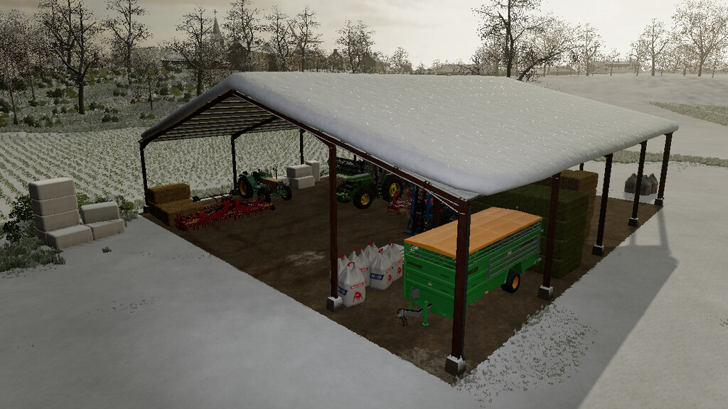 Mod Vehicle Shelter Metal v1.0.0.0 for Farming Simulator 2022 Measuring 26m x 24m x 8m, this sturdy metal barn is perfect for your farm or in the corner of a field. Credits: Blacksheep Modding |