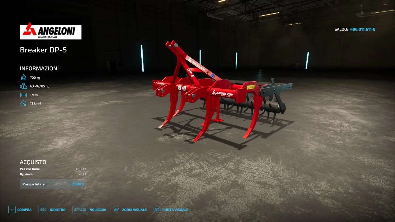 - Angeloni Breaker DP-5 removes the plowing status and allows you to create fields.