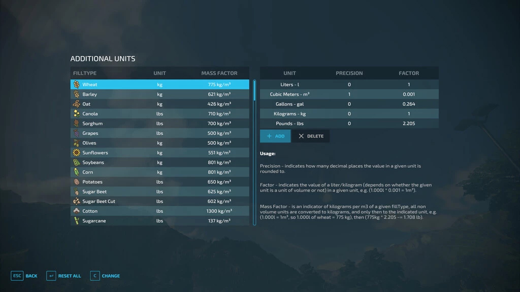 Thanks to this Additional Units modification, you can set the mass/volume unit. You can also add a new unit of measure according to your needs. Credits: VertexFloat |