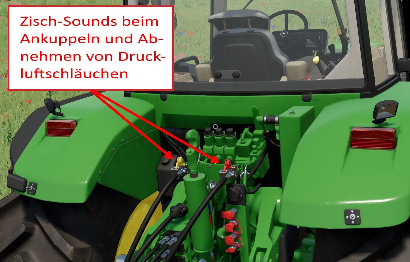 Mod Air Hose Connect Sound v1.0.1.1 for Farming Simulator 2022 This global script adds sounds to the game to connect and disconnect compressed air hoses. Version 1.0.1.1 When the trailer compressed air hoses are connected to the tractor, a hissing sound is heard and compressed air can be heard entering the trailer. A hissing sound is also heard when the compressed air hoses are removed. If the trailer mod has not (yet) installed dynamic hoses, there will be no hissing sound. This also applies to trailers equipped with only hydraulic hoses, as they are braked using hydraulic pressure, not air pressure. Credits: PeterAH |