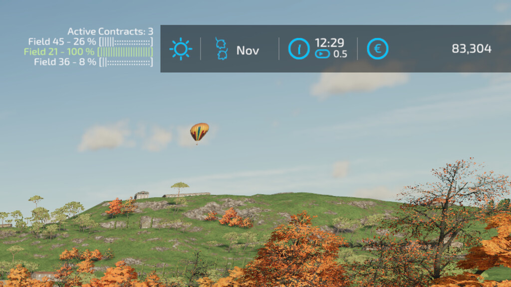 Mod Contract HUD v1.0.0.0 for Farming Simulator 2022 A useful little HUD that displays the current completion percentage of all active contracts. Hotkeys: Credits: StingerTopGun |