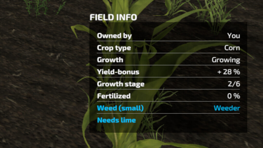 Mod Crop Growth Stage Info v1.0.0.0 for Farming Simulator 2022 Displays the exact growth stage of a crop in the field information bar next to the total number of growth stages before it can be harvested. Credits: SvenP |