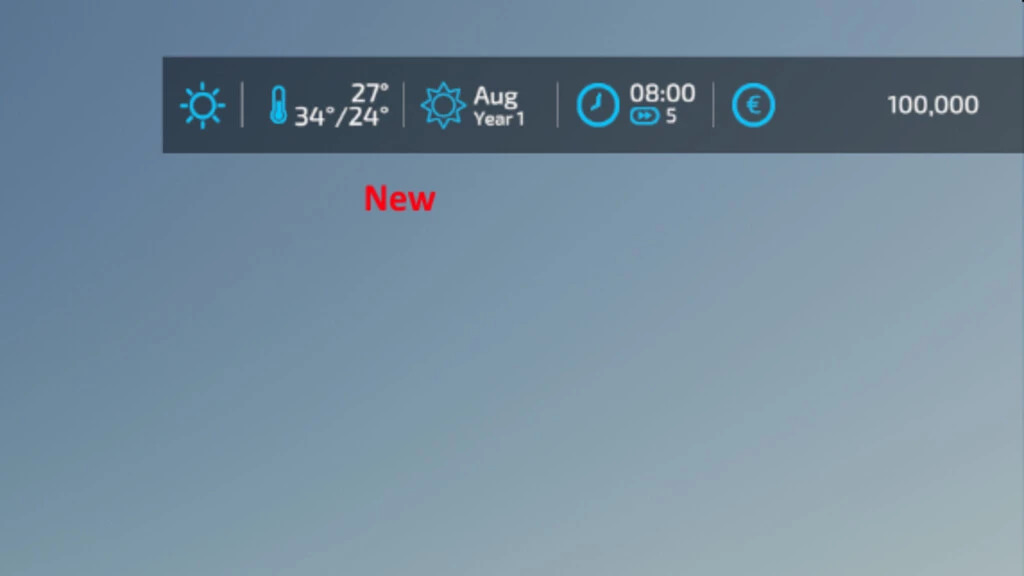 Mod Extended Game Infodisplay v1.0.0.0 for Farming Simulator 2022 Extends the current GameInfoDisplay in the top right to display the current year below the date, and activates a hidden temperature feature with an indicator of whether the temperature is falling, staying the same, or rising, showing the current temperature and min/max temperatures. day. Credits: Peppie84 |