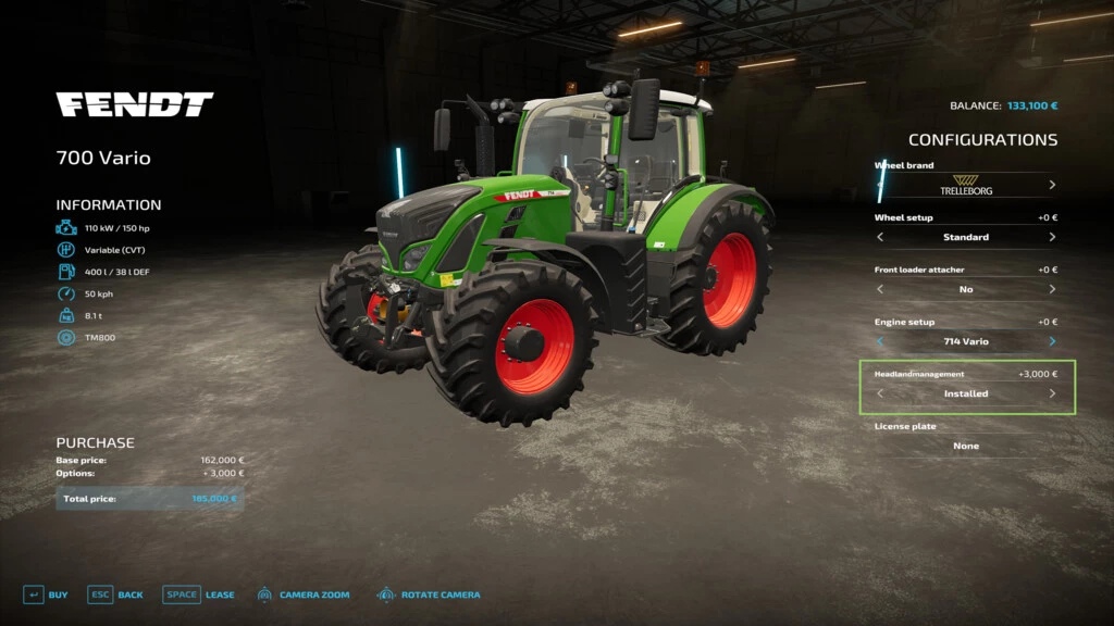 The headland management system needs to be added once to the respective vehicle in the shop or workshop as a configuration before it can be used. The cost of this is 3000,-.