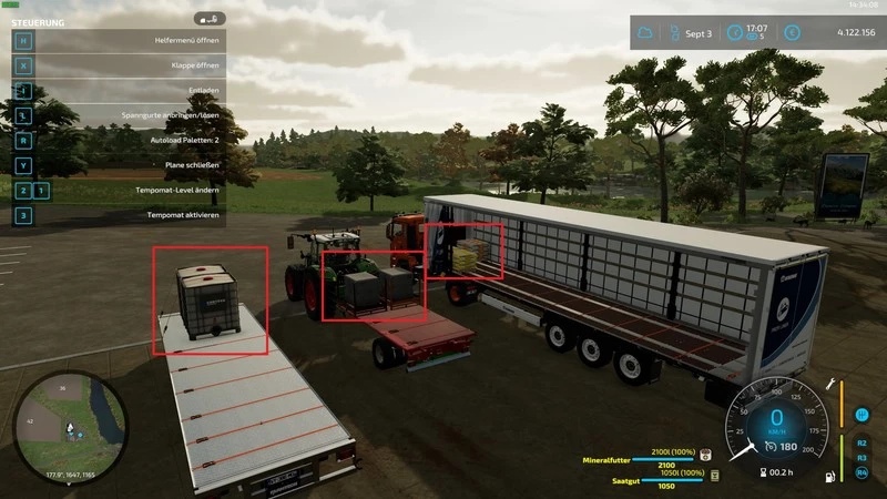 Activate loading with the [B] key, and then drive up to the pallet or bale to load it.