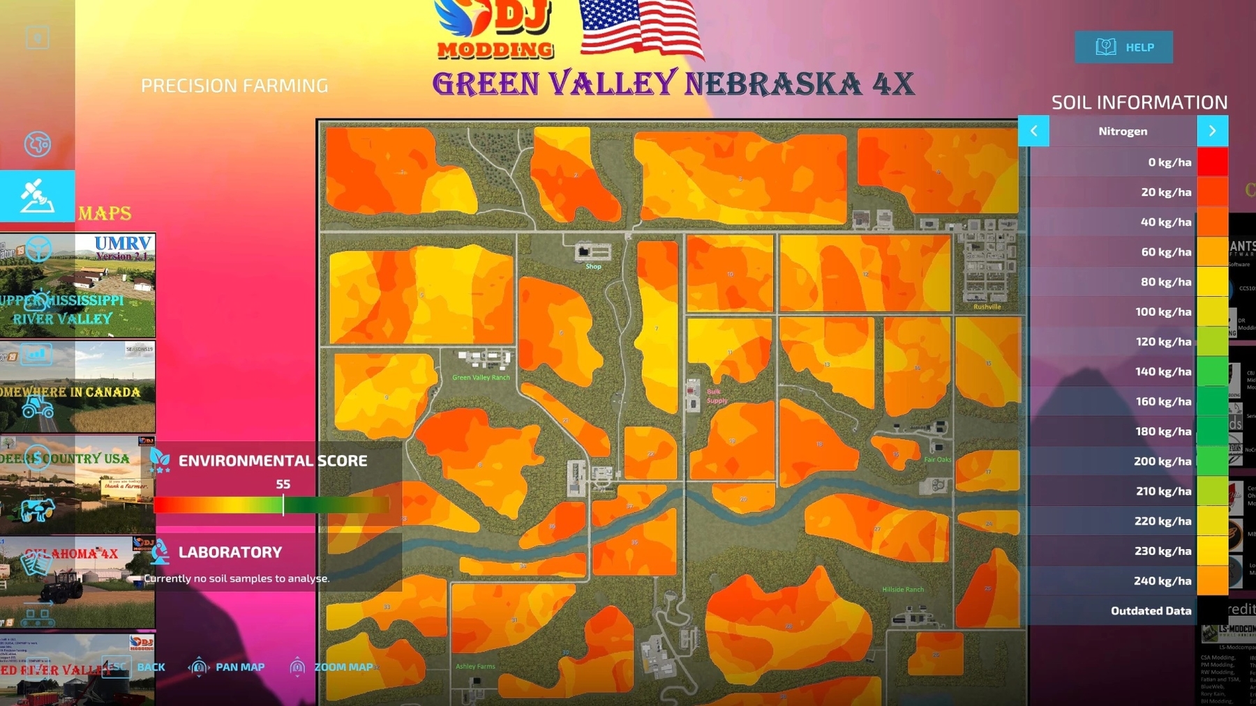 Make your virtual farm greener and more sustainable: the Precision Farming Anhydrous Ready mod introduces new game mechanics based on real smart farming technologies. This includes four different soil types and soil sampling, economic analysis and environmental assessment for your farm. Yield sensors and various mechanisms to dynamically increase yields and care for crops will help you save seeds, lime, fertilizers, herbicides, fuel and, in the end, money. All this while reducing the impact of your activities on the environment. The John Deere R732i PowrSpray, ISARIA Scout and ISARIA PRO Active expand your arsenal of sustainable farming tools. The new Precision Farming tab in the menu gives you all the information you need to optimize yields and take control of your finances and how you manage your farm. Soil map with special filters shows you the current state of your soil and every action you take is reflected in the economic analysis overview. At the same time, your farm's environmental score shows how environmentally friendly your work is. It is calculated based on factors such as reduced tillage, nitrogen levels, weed control using spot spraying technology, and others.