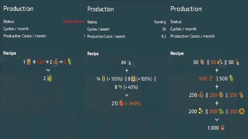 * Production that is the target of a mission can accept an unlimited amount of goods from the mission until the mission is completed. Mission items no longer go into production during missions.