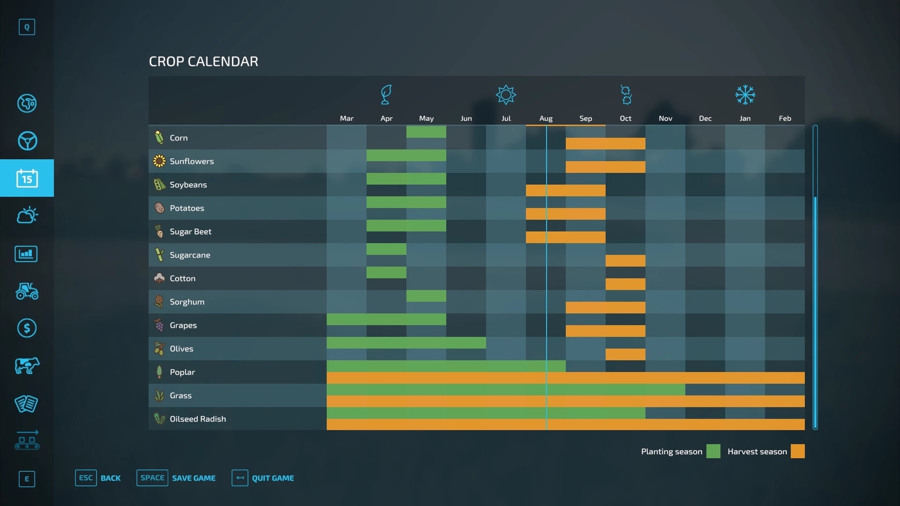 In the new game, starting in August, most of the fields are in the final stage of growth, with the harvest taking place in September.