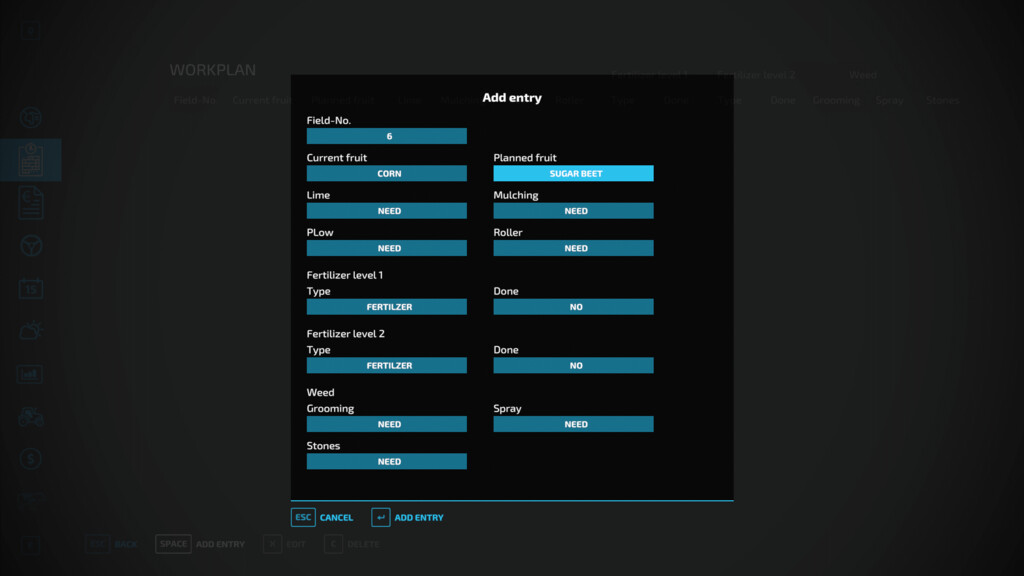 Mod Workplan v1.0.0.0 for Farming Simulator 2022 This work plan will help you manage and plan your fields. Credits: KR-Softwares |