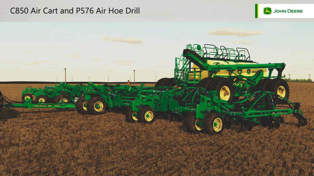 John Deere C850 pneumatic trailer - "Precision beyond measure" Specifications: Functions: John Deere P576 pneumatic drill - "Advanced depth control for even operation." Specifications: Functions: Credits: Custom Modding |