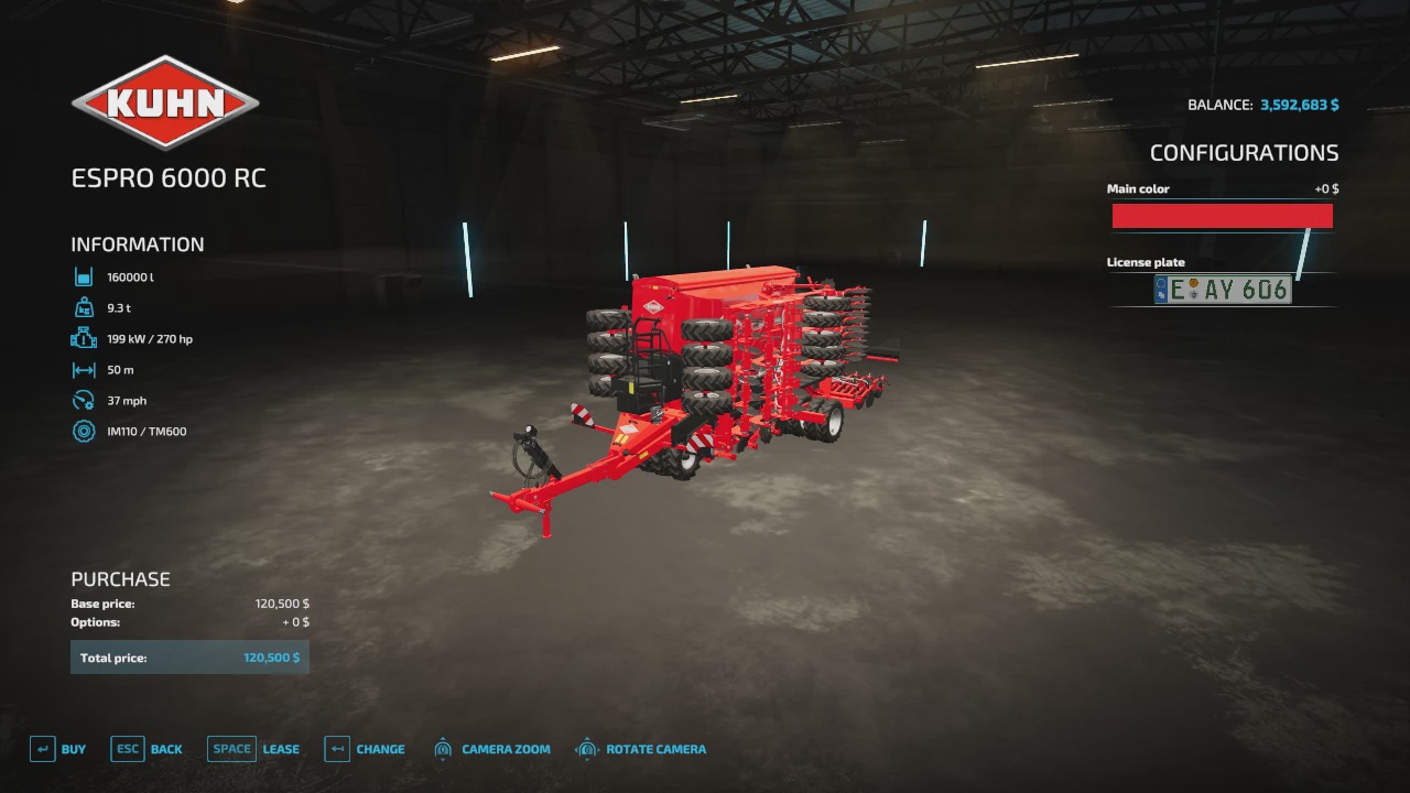 Mod Kuhn Espro6000RC v1.0.0.0 for Farming Simulator 2022 Multifruit Seeder Capacity - 80 000 l Working speed increased Working width - 50m
