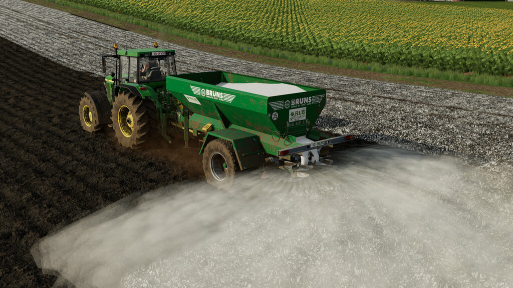 Mod Bruns MBA 12000 v1.0.0.0 for Farming Simulator 2022 Single-axle trailer for granular and pulverized fertilizers or lime, equipped with an 800 mm wide conveyor belt and steep walls to avoid bridge formation. Price: 24.500 $ Credits: VertexDezign |
