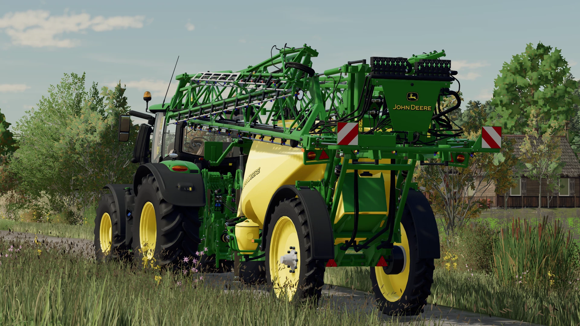 John Deere 6000 sprayer for FS22. – Price: $73,000; – Working width: 36.0 meters; – Capacity: 6000 liters; – Max. working speed: 20 km/h.