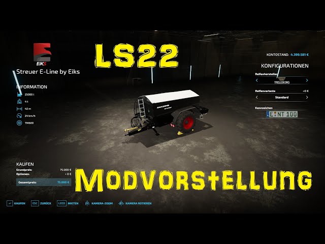 Mod Streuer E-Line by Eiks v1.0.0.0 for Farming Simulator 2022 - Purchase price increased (75k) Credits: Giants Eiks |
